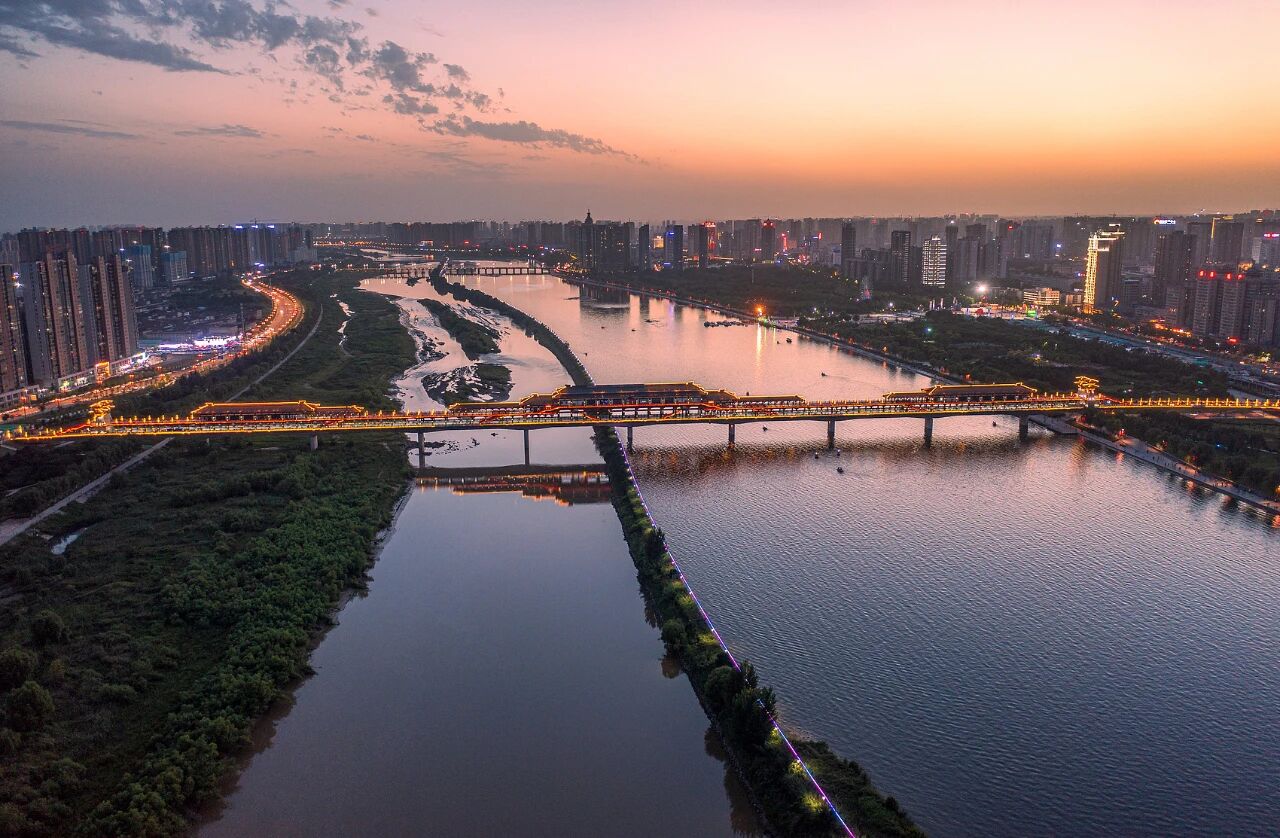 咸阳渭河上的古渡廊桥。(图/视觉中国)