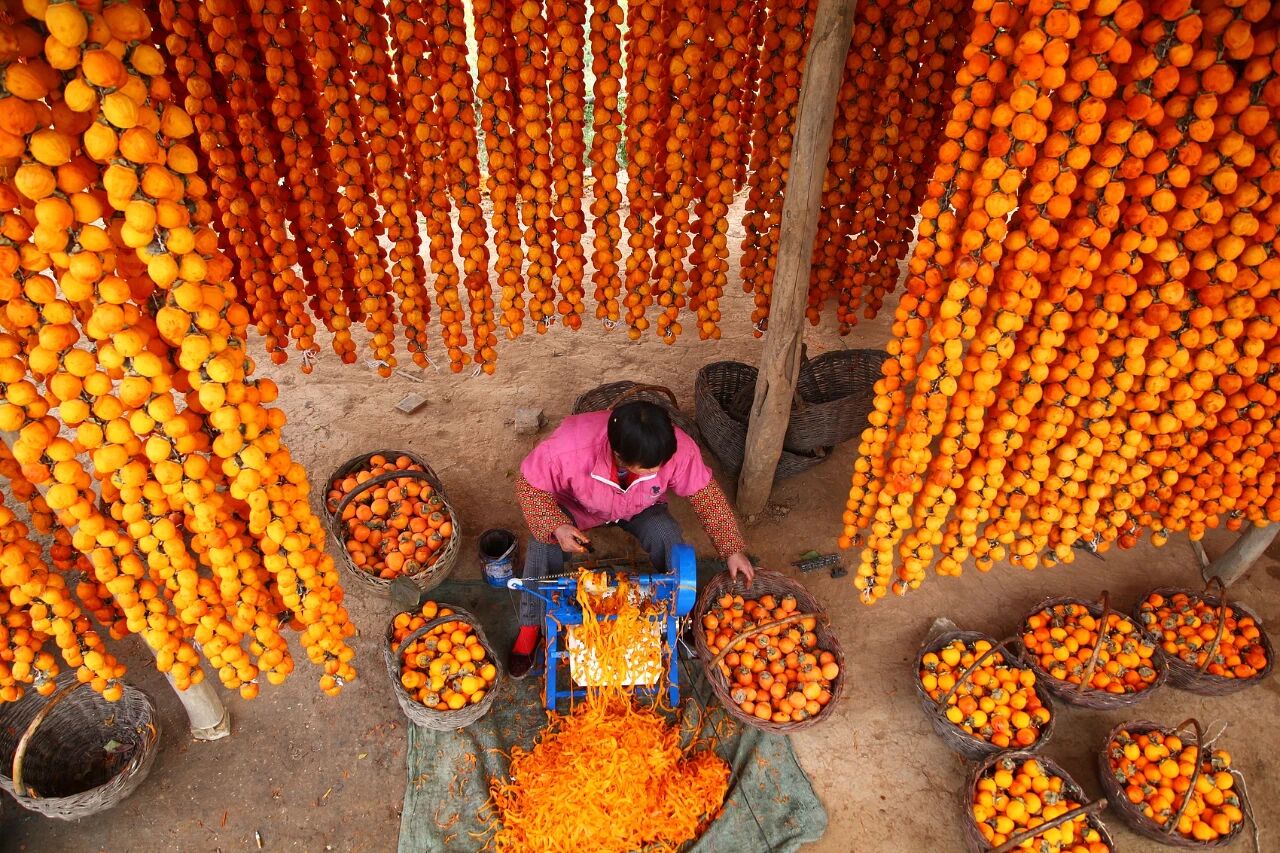 秋天里,咸阳农户忙着晒柿干。(图/视觉中国)
